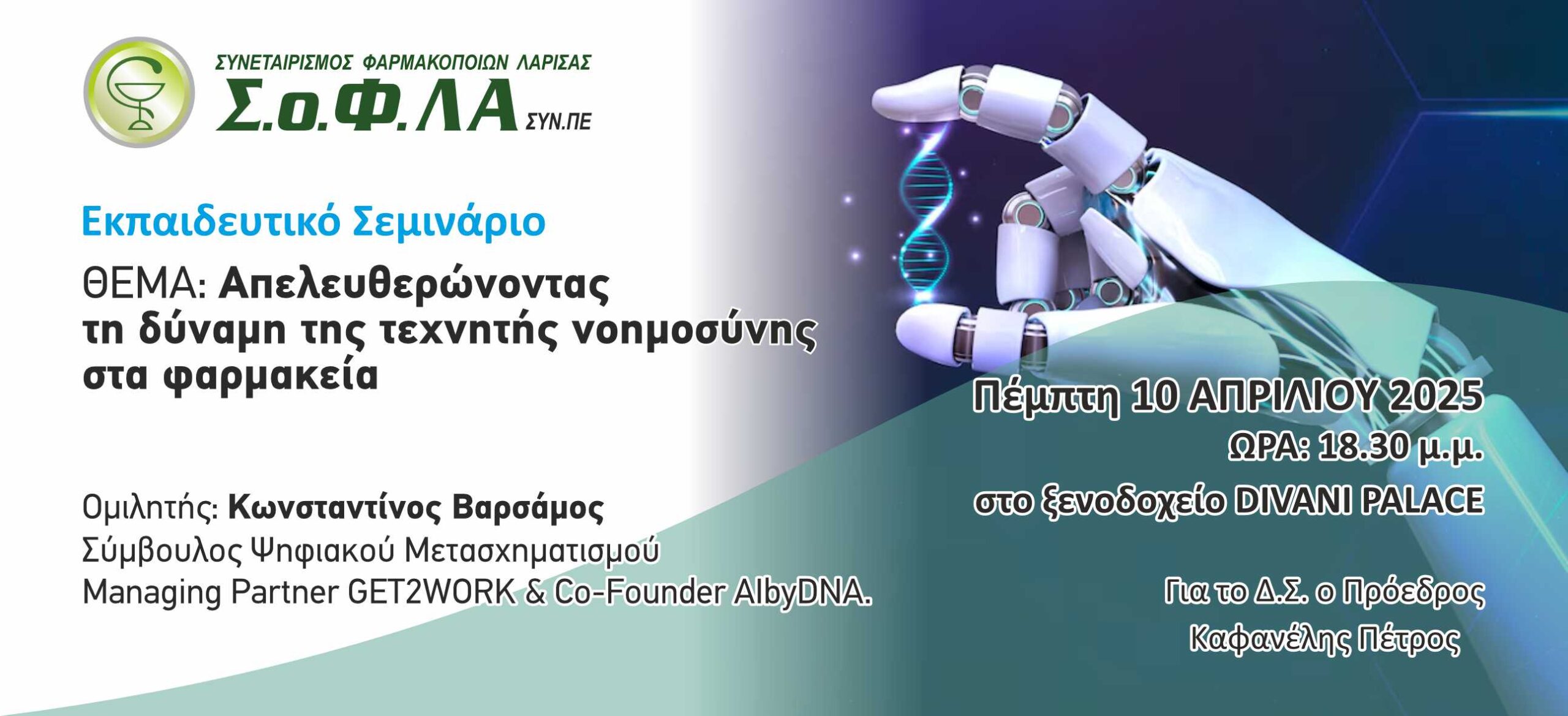 A very insightful question raised by a pharmacist during the educational seminar organized by the Larissa Pharmacists’ Cooperative (S.O.F.L.A.) on Thursday, April 10th, with guest speaker Konstantinos Varsamos.